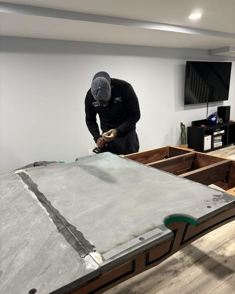 يقوم فني تركيب طاولات بلياردو بالرياض باستخدام خامات عالية الجودة لضمان عمر أطول وأداء أفضل.