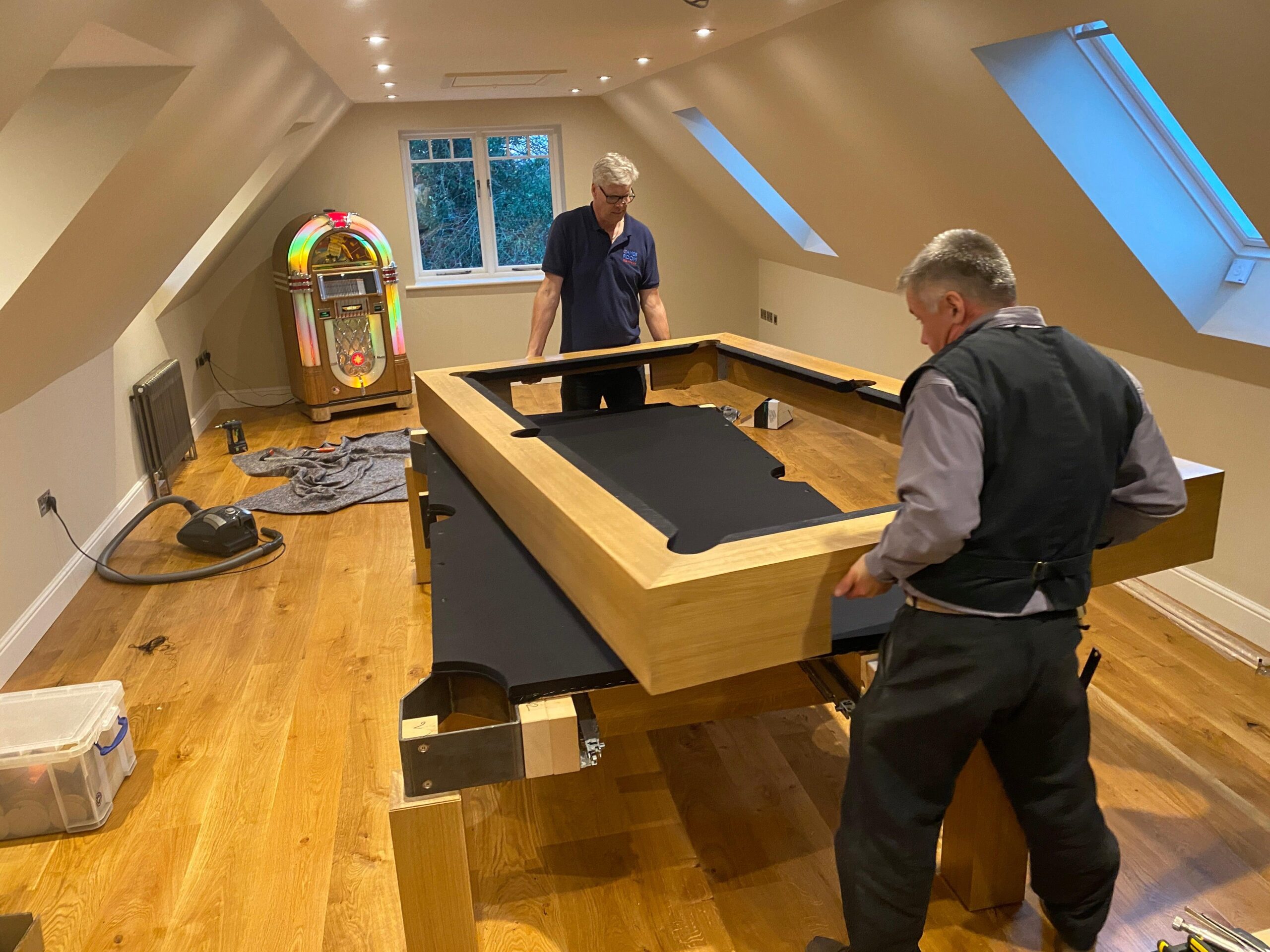 عند تنفيذ تركيب طاولة بلياردو بشكل صحيح، يتم التأكد أولًا من أن الأرضية مستوية وقادرة على تحمل وزن الطاولة، ثم يتم تركيب القاعدة بطريقة متوازنة تمنع أي اهتزاز. بعد ذلك يتم تثبيت السطح (الألواح) بعناية، يليها ضبط الميزان باستخدام أدوات دقيقة، وهي من أهم المراحل التي تؤثر بشكل مباشر على الأداء.
